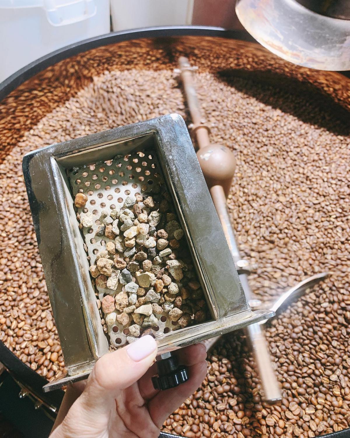 Наш кофе проходит тройную очистку. Первые две ступени выполняют дестонеры они избавляют зерно кофе от посторонних включений. Так как зерна зеленного кофе на плантациях сушатся на земле, то часто в мешки с зернами кофе попадаются мелкие камушки или зерна других видов растений, например фасоли. Очистка в дестонерах происходит с помощью потоков восходящего воздуха, которые подхватывают лёгкое обжаренное зерно вверх, в то время как тяжёлые фракции падают вниз.